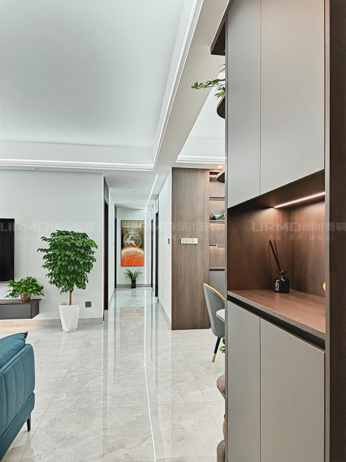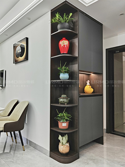 過道銳角過多且不夠寬敞,可以把柜子做成弧形處理,整個過道會柔和很多