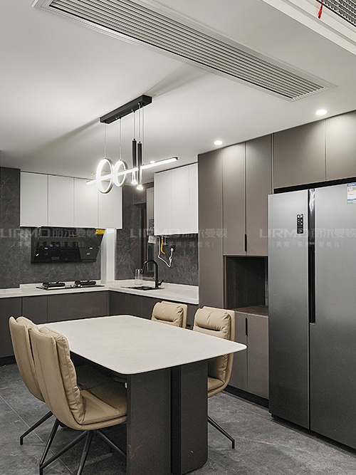 L型開放式廚房連接3平米餐邊柜,分擔了廚房收納還可以減少了儲物壓力,