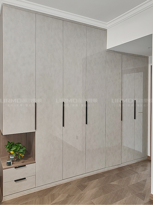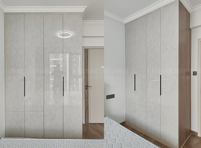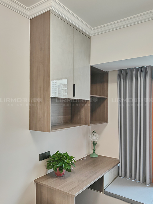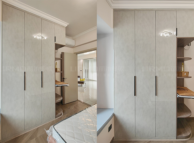 臥室選用一門到頂設(shè)計收納空間超大,右側(cè)加入分割式柜體擺放書物何一些其它物品,