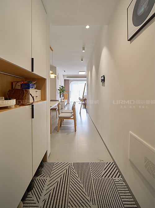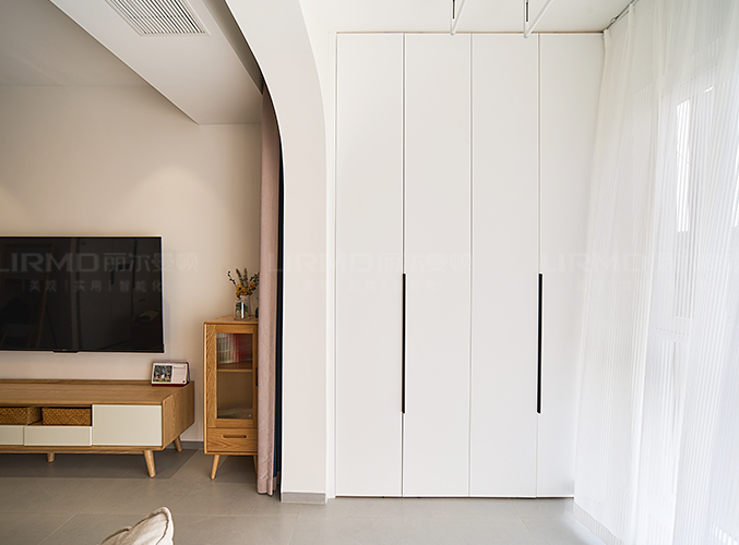 實木柜體搭配PET膚感柜門,質感超不錯,可作為鞋柜/衣柜/收納區,底部留空擋,