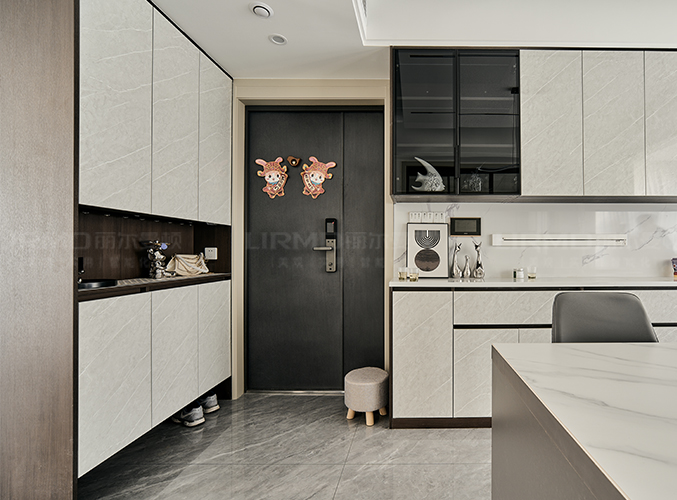 18mm厚杉木芯板,PET膚感柜門,上下分段設(shè)計(jì),下方懸空設(shè)計(jì),好放置鞋子,中間內(nèi)嵌設(shè)計(jì),