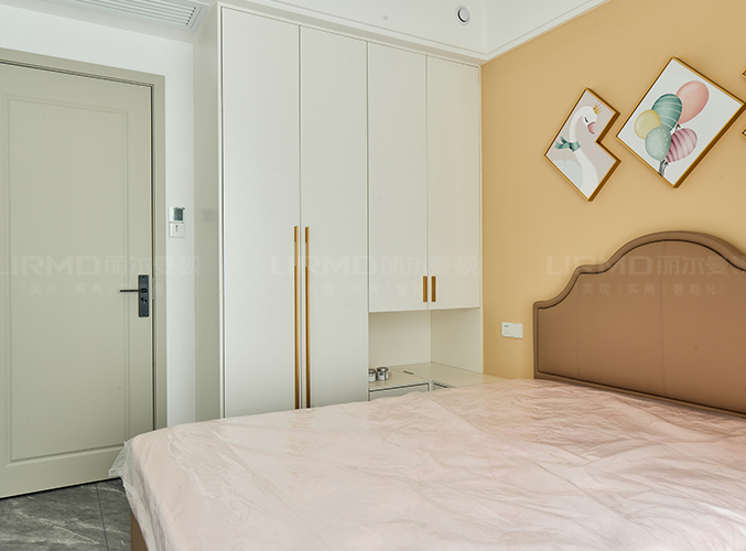 衣柜書桌一體化設(shè)計(jì),學(xué)習(xí)辦公兩不誤,實(shí)木柜體搭配PET膚感柜門,質(zhì)感超不錯(cuò)。