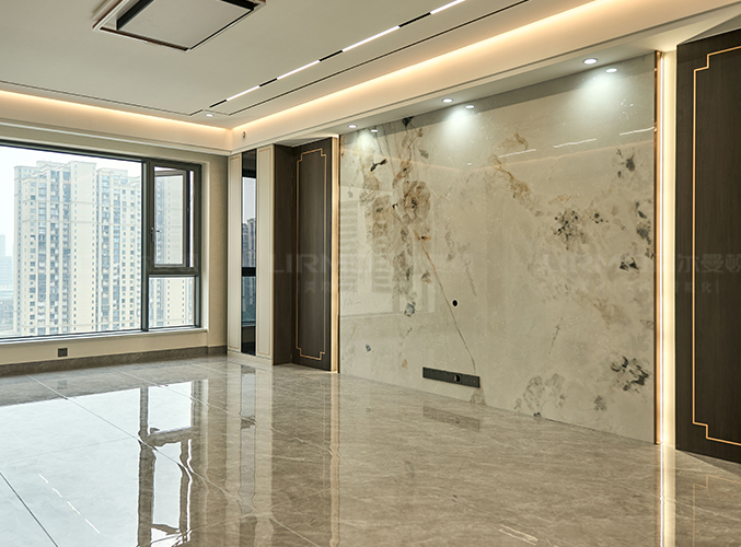 整屋通鋪瓷磚,明亮又顯大,視覺上更加干凈整潔,電視背景墻左側裝飾柜,收納方便,