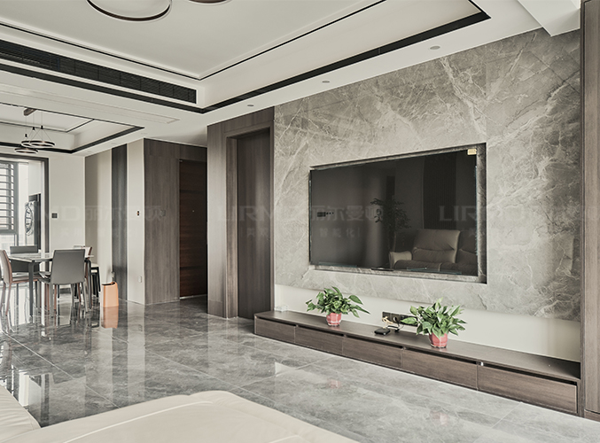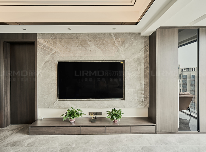 電視背景墻做內(nèi)嵌式設(shè)計(jì),不占空間,右邊搭配柜子,收納更加方便。