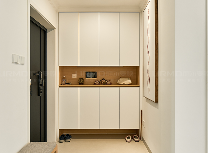18mm厚杉木芯板,實木柜體搭配PET膚感柜門,可作為鞋柜/衣柜/收納區(qū),
