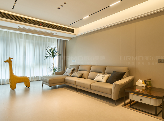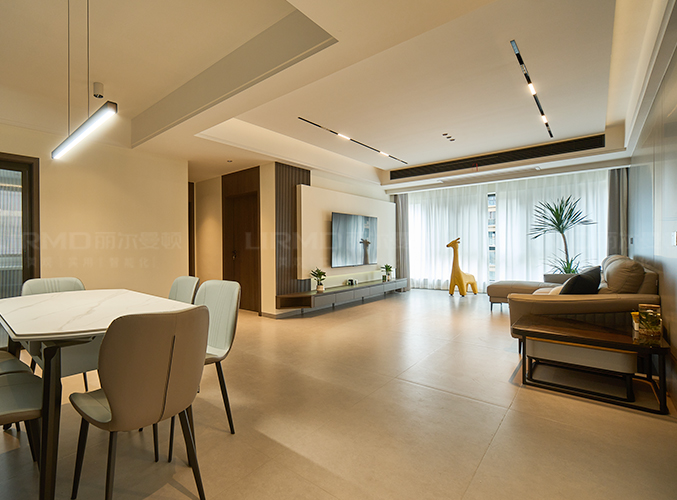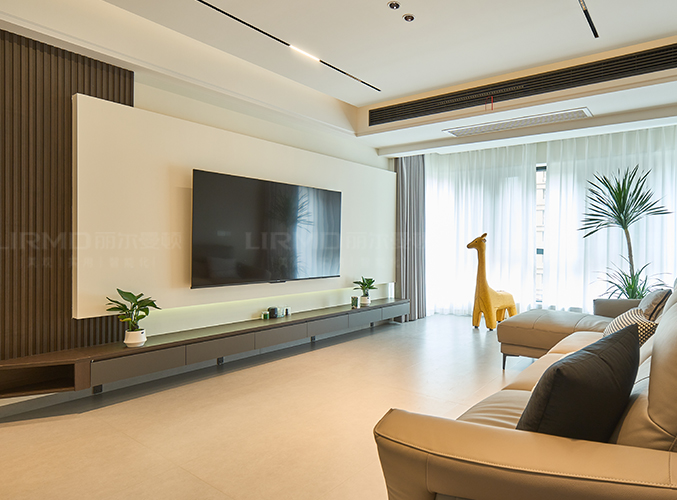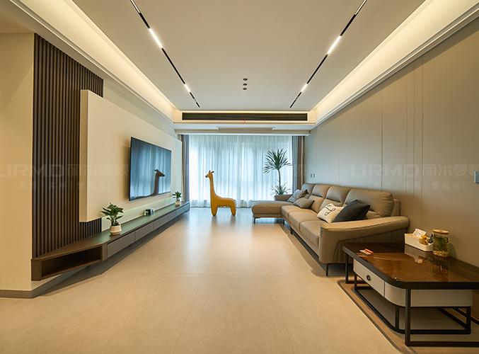 整墻做電視背景懸浮柜,整體灰色系基調(diào)搭配無主燈設(shè)計(jì),線性燈帶營(yíng)造滿滿高級(jí)感。