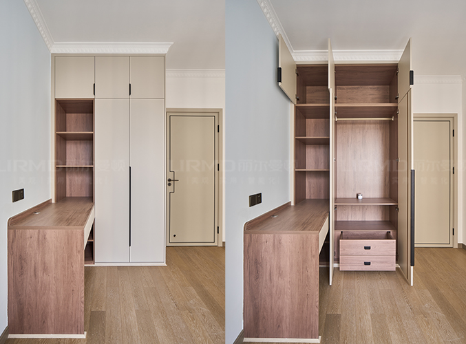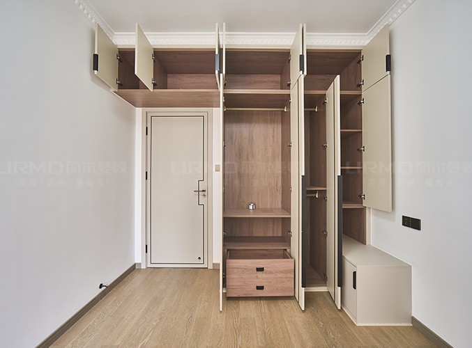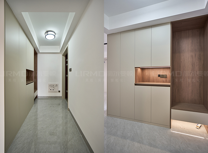 18mm厚杉木芯板,淺色柜門加深色柜體的碰撞,視覺效果更好,下方懸空設(shè)計,好放置鞋子,