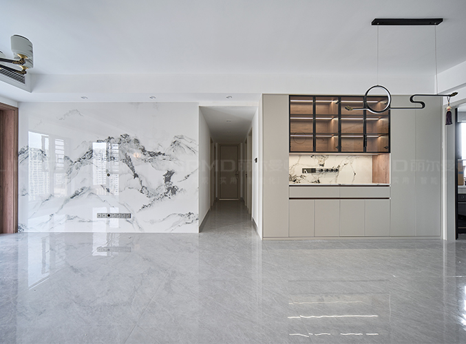 整墻做內(nèi)嵌電視背景墻,不占空間,吊燈設(shè)計,增強照明實用性的同時又增貼了空間藝術(shù)感,