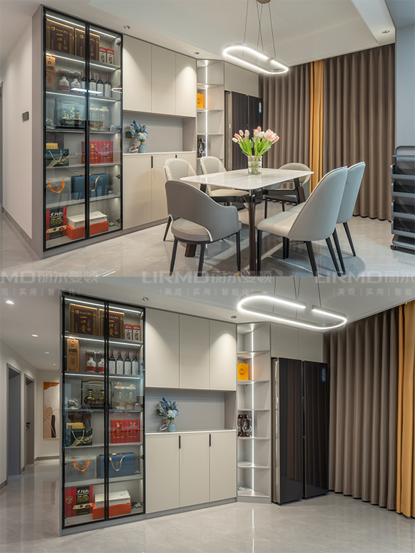 全屋定制:做了15個柜子(入戶到頂大鞋柜、整版餐邊柜、到頂玻璃收納柜、冰箱內嵌柜、