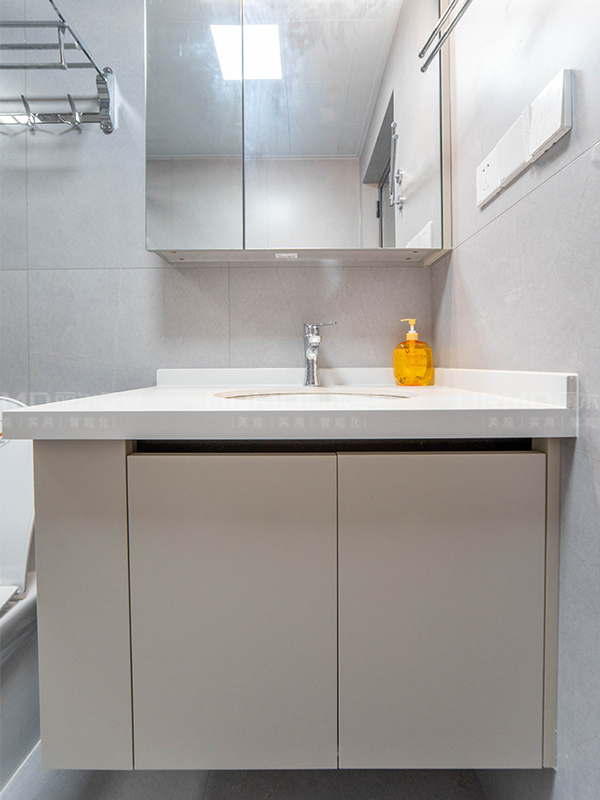 柜體采用18厚杉木芯板,柜門采用歐松板PET膚感柜門,