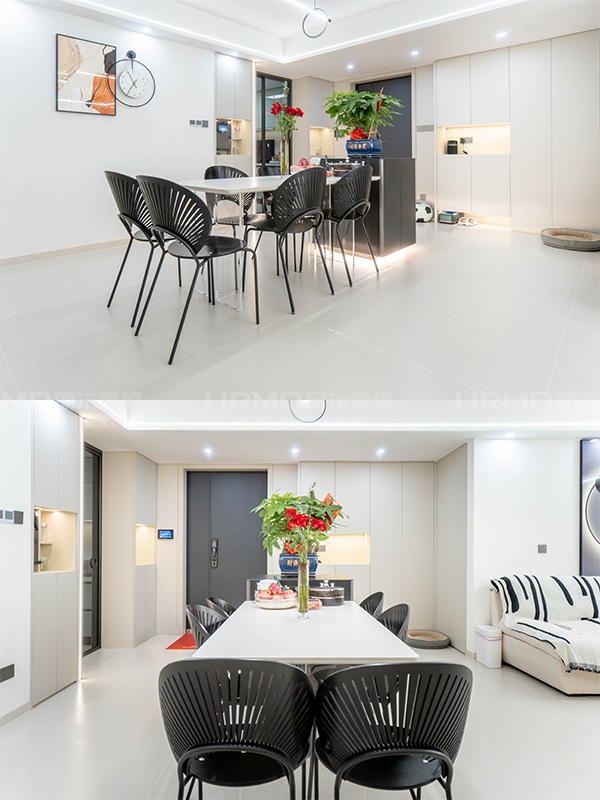 餐島一體化設計,大幅度節省空間也提升餐桌的功能性使用