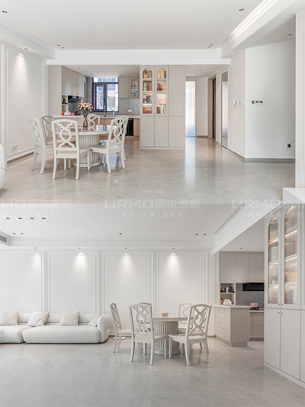 豎廳客餐廳更適合圓桌,風格更和諧,動線更自如,客廳陽臺一體,呈中柱線條構建美感,
