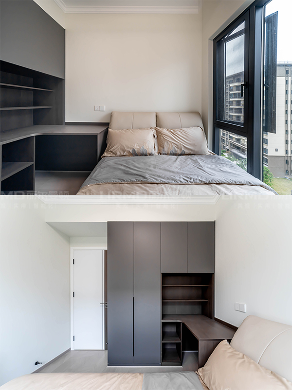 統一配置超高房門,L型櫥柜均采用5大系統定制,高低臺面滿足人體工程學設計