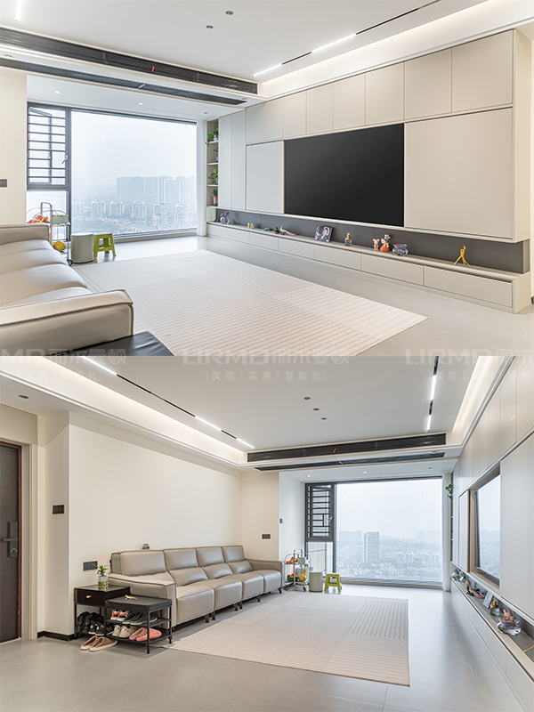 全屋通鋪 750×1500瓷磚,增強(qiáng)空間連續(xù)性,視覺效果也太顯大了吧