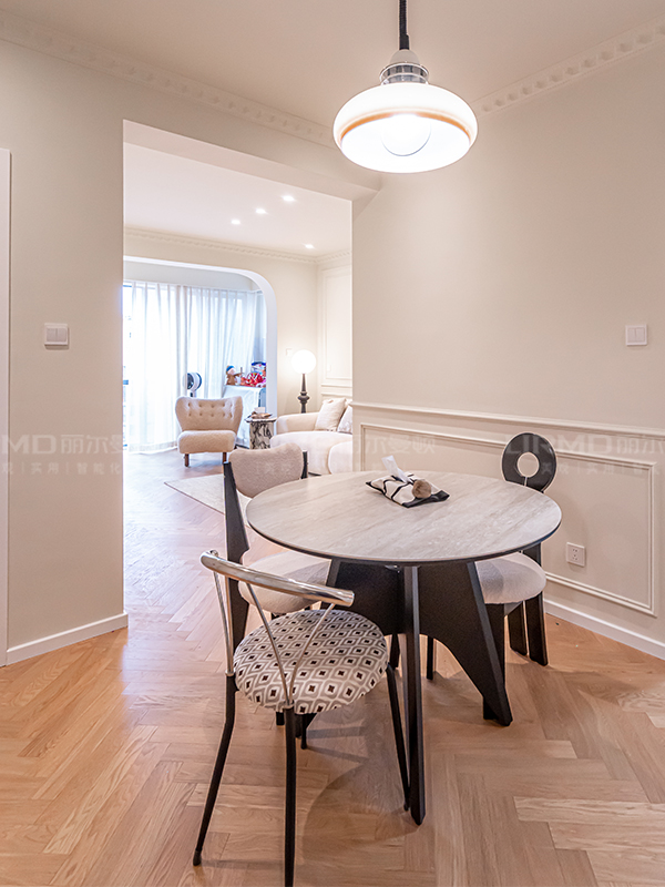 墻面采用法式線條搭配弧形門洞,法式的優(yōu)雅呼之欲出