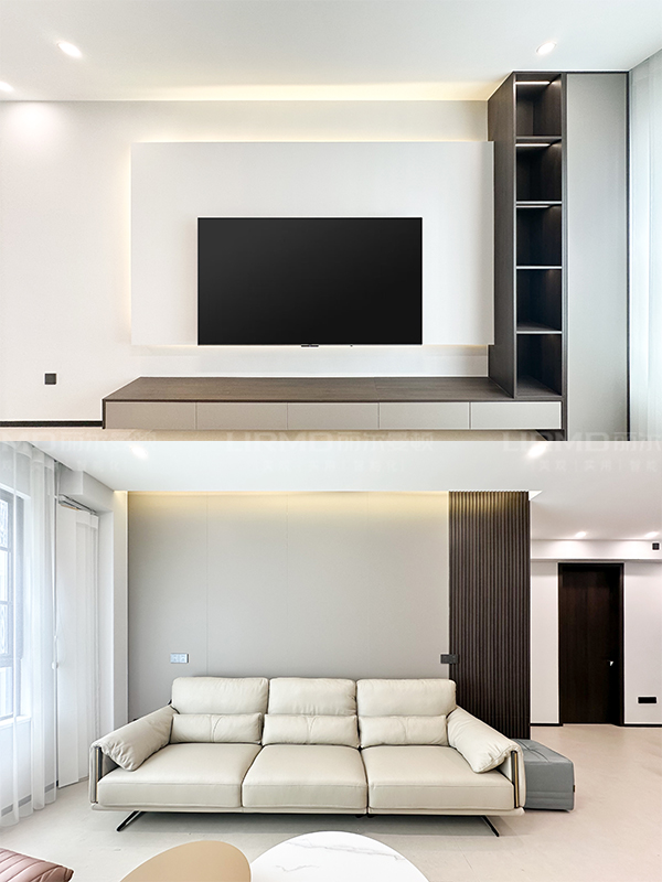沙發(fā)背景墻的吊頂設(shè)計(jì)反光燈槽洗亮整個墻面,氛圍照明 yyds