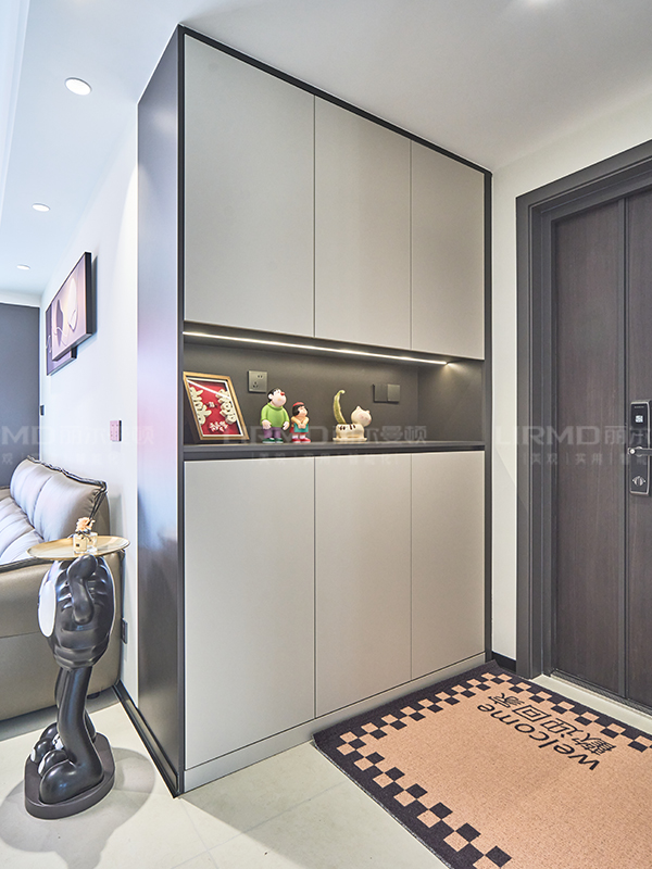 門(mén)墻柜一體化,創(chuàng)造出統(tǒng)一、協(xié)調(diào)的視覺(jué)效果,讓整個(gè)空間顯得更加一體化,營(yíng)造出簡(jiǎn)潔、整潔的氛圍
