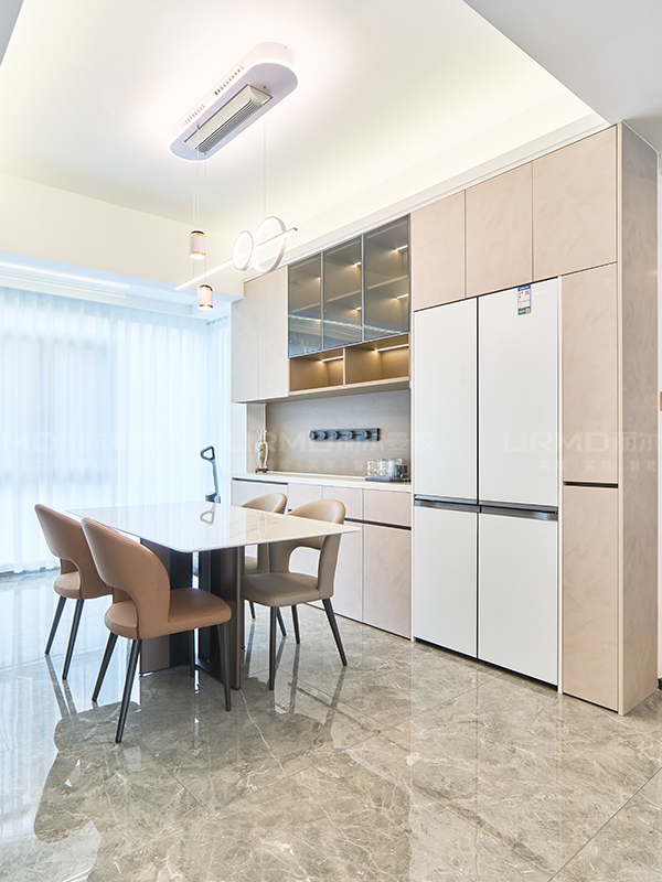 餐邊柜采用零嵌入式,整個冰箱柜和餐邊柜保持在同一平面,使得整體感增強
