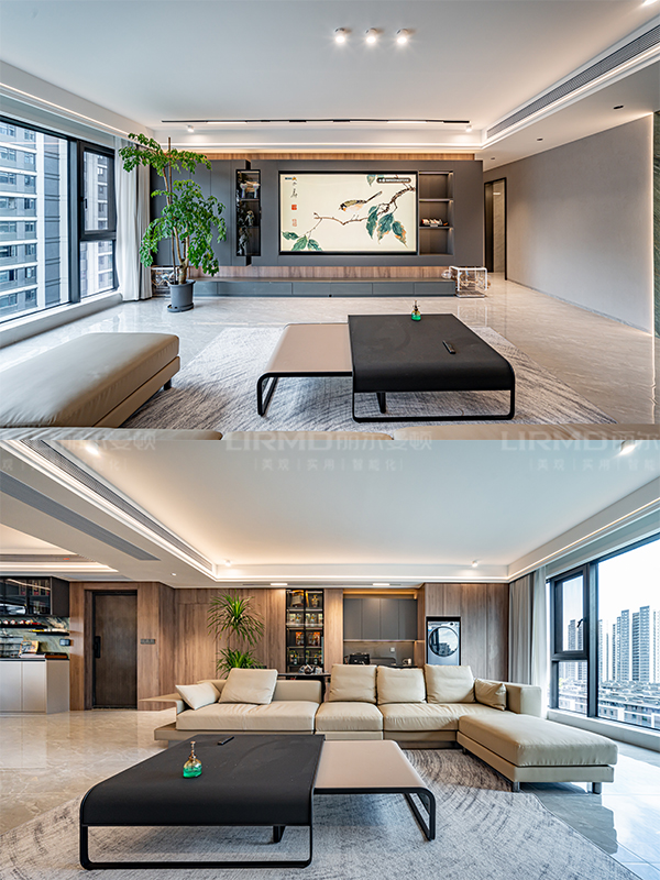 大橫廳明暗分區(qū),虛實(shí)結(jié)合,輕松又愜意,舒適又高級(jí)。