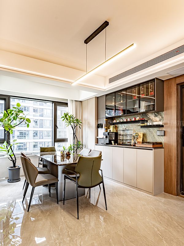 暗綠色奢華巖板裝飾,和餐邊柜互相呼應(yīng),打造低調(diào)的奢華視覺享受。