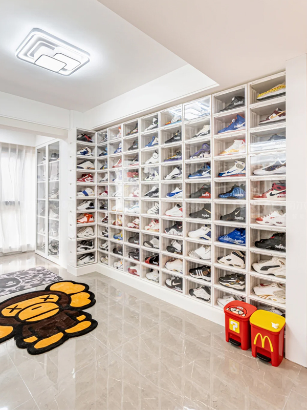 砸墻改個性化辦公桌,通透感拉滿,整墻玻璃柜門(球鞋懸浮術)