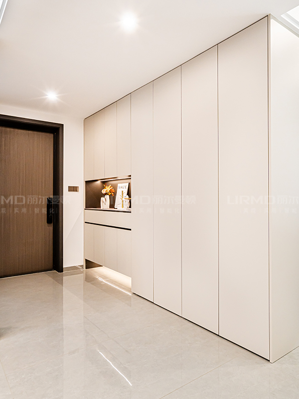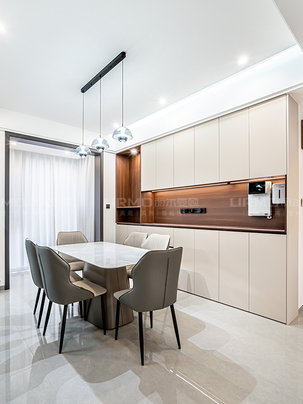 柜體采用無把手設計 ,視覺極簡,收納力MAX,軌道插座等細節設計貼心又高級