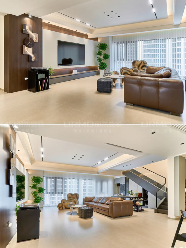 隱形設計:所有門套、踢腳線做極簡收口,連空調風口都定制同色格柵,強迫癥狂喜