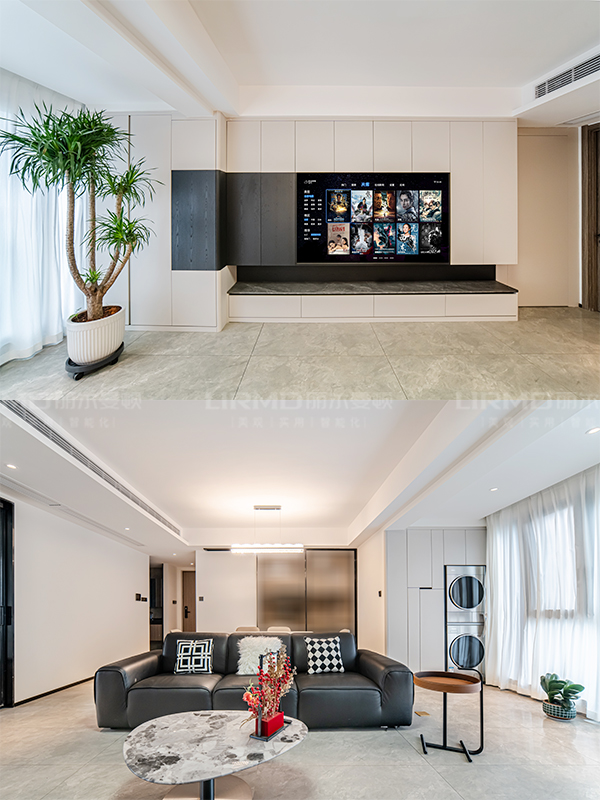 灰(20-30%):地面(灰色地磚)、沙發、窗簾等過渡色,平衡黑白對比。
